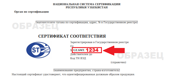 In the certificate of conformity, the value begins with UZ.SMT.+a numeric value.